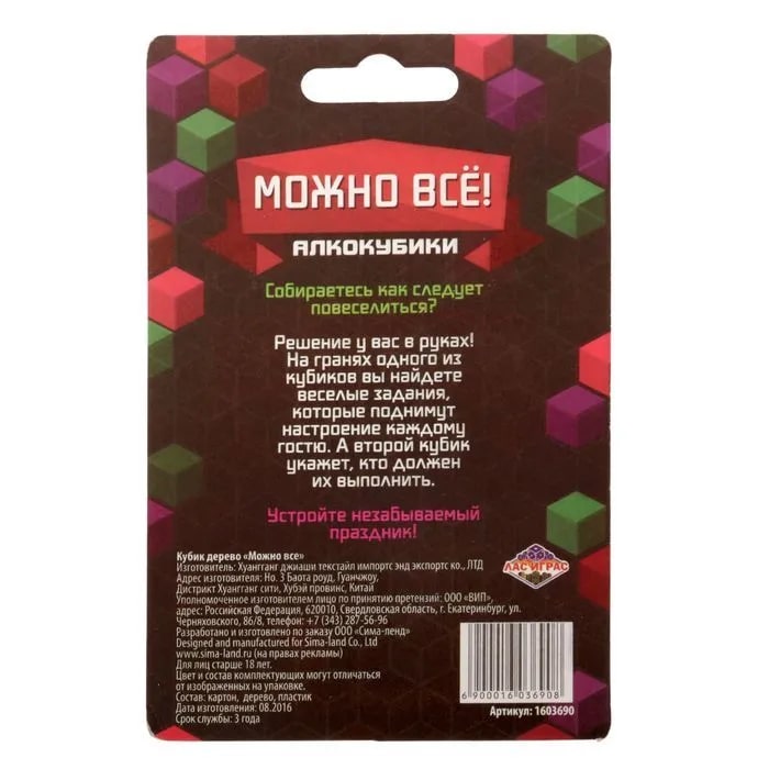 Купить кубик "можно все", алкокубики для принятия решений от 60 руб. с доставкой до пункта выдачи в Ефремове. Интернет магазин ДекаМаркет. Оплата при получении.